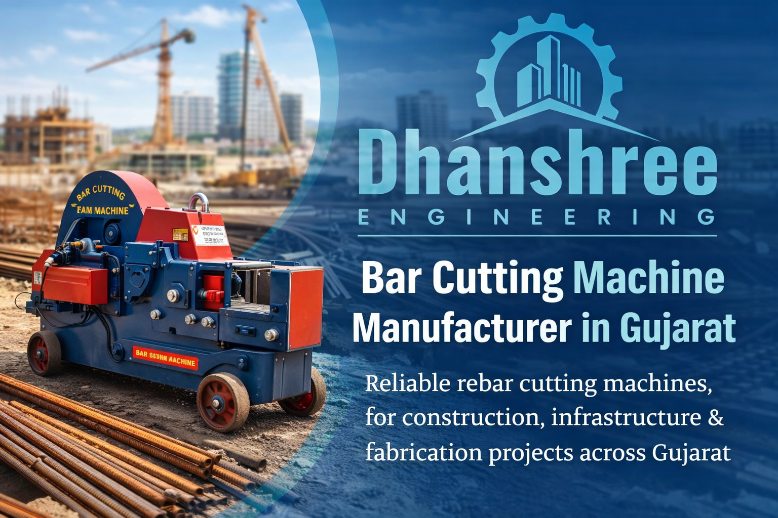 Dhanshree Engineering operates from Ahmedabad and manufactures steel bar processing and construction equipment for industrial applications. Its range includes bar cutting machines designed for consistent performance, along with complementary machinery required for reinforcement and concrete work.